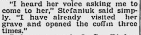 At the time of his arrest, the officers found candles that he’d brought to burn for the repose of her soul, holy water to spinkle on her remains, and various articles of food, clothes and household effects, as well as a prayer book. He told them that he’d felt guilty for not providing her with those comforts in life and for not taking her to church, so he tried to give them to her in death.