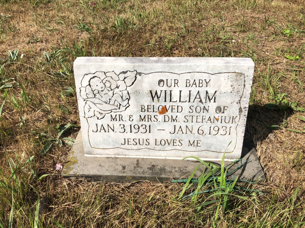 Another interesting item I found while scrolling was the tombstone for one William Stefaniuk, who lived for only three days in January, 1931. Born January 3rd, died January 6th.