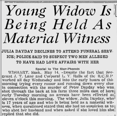 Picture if you will, a seventeen-year-old girl named Julia Wochuko (also saw it spelled Wockuko), living in the Wishart district of Saskatchewan in 1931. She’s young, she’s beautiful, and she’s having problems with her dad. Arguments, that sort of thing. What she really needs is to get away from him and assert her independence.