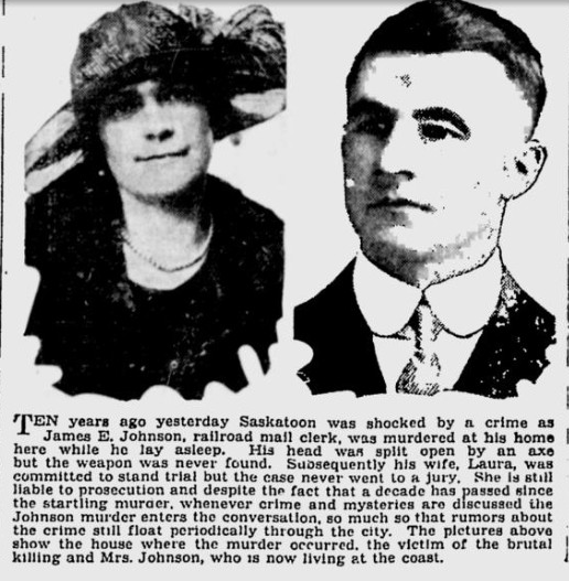 According to Laura Johnson, her husband had arrived home on Christmas morning between 8:00 and 9:00AM after working an overnight run. She herself had arrived home at about 7:30AM, after spending the night at her friend’s, Mrs. Shervill. She had a sixteen year old son from her first marriage (her first husband had died in the war), but he was away, celebrating with a friend on a farm in Kenaston.