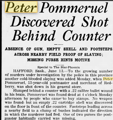 At around 3:15 in the afternoon, a few customers gathered at the door of the small general store in Redberry, Saskatchewan to buy stamps. The door was locked, but they weren’t alarmed, assuming the owner and postmaster, Peter Pommereul, would return soon.