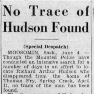 The body was removed to Moosomin, where Mr. Roe recognized the sweater-smock and identified the body as Richard Arthur Hudson, a farmhand who’d gone missing two years previous.