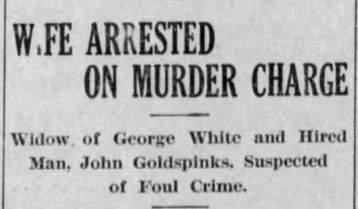 His wife, Doris, had been married to him for three years and together they had a small child of about two and a half years old. The two had apparently quarreled almost constantly, and within three days she and their hired man, John Goldspinks, were arrested for his murder.