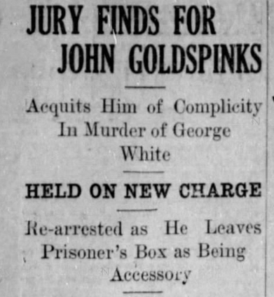 John Goldspinks was acquitted of being an accomplice but was immediately arrested again, this time on a charge of aiding and abetting after the fact and was found guilty. He was sentenced to five years.