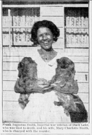 On the morning of Monday, May 20, 1935, Mrs. Caroline Fisher went to the home of Frank and Charlotte Smith. She did some work for the Smiths and arrived at their small cottage on the south end of Duck Lake at her usual time of 7:00AM. She knocked on the door, then entered. As she went through to the bedroom, she noticed Mr. Smith was still asleep on his cot, while his wife lay on her own bed, rubbing her head.