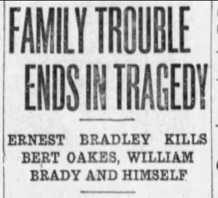 Violet Bradley couldn’t give a reason for the shooting. As far as she knew, Ernest didn’t know about the separation. It’s possible her brother accidentally let something slip that tipped Ernest off and sent him into a rage, or it’s possible his long standing resentment of Brady finally boiled over. No one will ever know what happened that night, what events led to Ernest picking up the rifle and shooting his employer, his brother-in-law and himself.