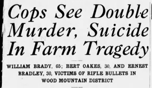 The farm belonged to William Brady. He’d lived in the Moose Mountain district near Carlyle for many years, and in fact had been one of the area’s pioneer homesteaders. He was about sixty five years old. Also living on the farm was Ernest Bradley and his wife, Violet, who both worked for William. Violet had been his housekeeper for about ten years before marrying Ernest just before Christmas.