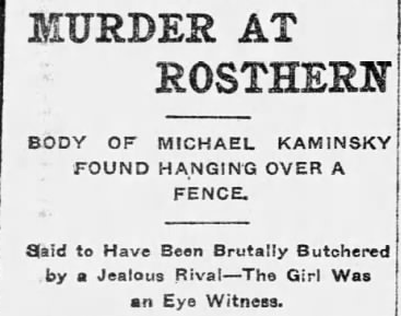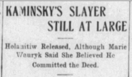 This was especially true for a young woman named Marie Wauryk. It was known all over the community that she was with Michael Kaminsky on the night he was murdered, but she refused to give any information to the police. Eventually they got her to admit that yes, she was with him. The two were out walking when someone struck Michael from behind. Marie told police she ran away, saying that she only saw one man but she didn’t know him.