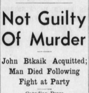 On May 6, 1938, after deliberating for an hour and fifteen minutes, John Btkaik was acquitted. While there was evidence of fighting between the two men, there was no solid proof tying Btkaik to the fatal blow that killed Hartenberger. No one had seen it and the police couldn’t say for certain what weapon was used. He was free to go.