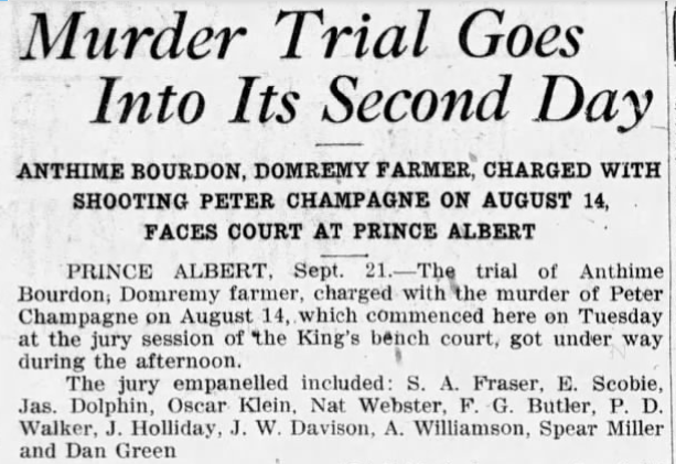 Following the inquest, a preliminary hearing was held and Anthime Bourdin was committed to stand trial that September in Prince Albert.