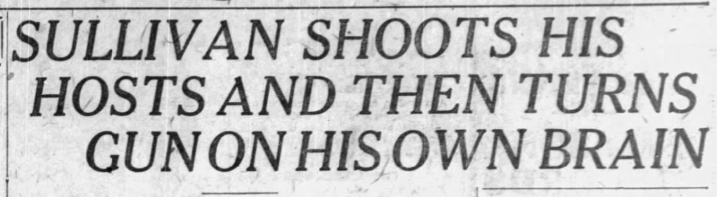 At this point, Bert Atkinson arrived and he and Florence went inside the house, where they found Sullivan dead in a pool of blood in the bedroom. There was a hole in his temple, the revolver still tightly clasped in his right hand. It appeared that after ordering the kids from the house, he’d gone and sat down on a chair in the bedroom and shot himself, his body falling forward onto the floor and ending up in a somewhat huddled position.