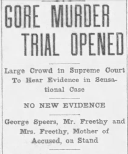 On September 29, 1914, Elizabeth Gore’s murder trial began.