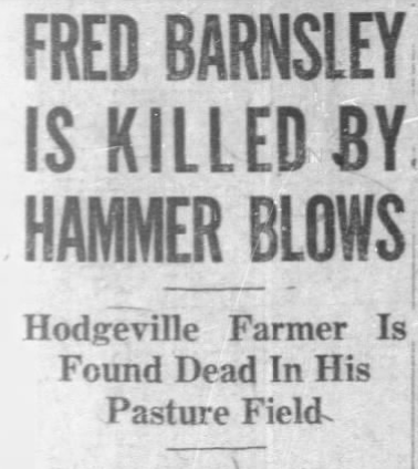 According to Barnsley’s wife, the Thursday before the murder, Stahmann and Barnsley had discussed the selling of the Barnsley farm to Stahmann. They’d agreed on a price of $4000, $1500 of which was supposed to be paid in cash. Stahmann told Barnsley that he’d return on Saturday to close the deal, but he didn’t show. On the following Tuesday morning, the day of the murder, he’d come and asked to borrow the hammer, supposedly so he could fix a fence. Very little was said about the farm deal at the time.