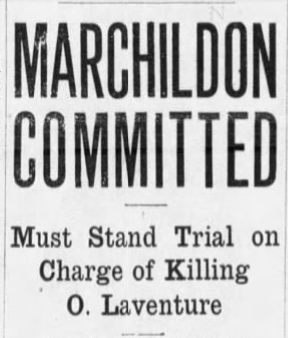 Rudolph Marchildon was committed to stand trial, although the magistrate, S. M. Mighton said he didn’t think he’d convict on the evidence presented at the hearing, and the following day, after another preliminary hearing for Tremblay, Magistrate Mighton ruled that Lorenzo Tremblay would not stand trial, stating that Tremblay was under no legal duty to take care of Laventure after he scrapped with Marchildon.