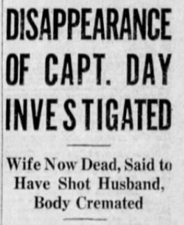 But Captain Day had a dark side. According to his children, he treated them all brutally, but especially their mother. Caroline told the court that her father “treated Mother mean and pounded her an awful lot.” He’d split her forehead once in 1923, and according to Caroline and her brothers, was persistently cruel, saying that their mother lived a life of misery.